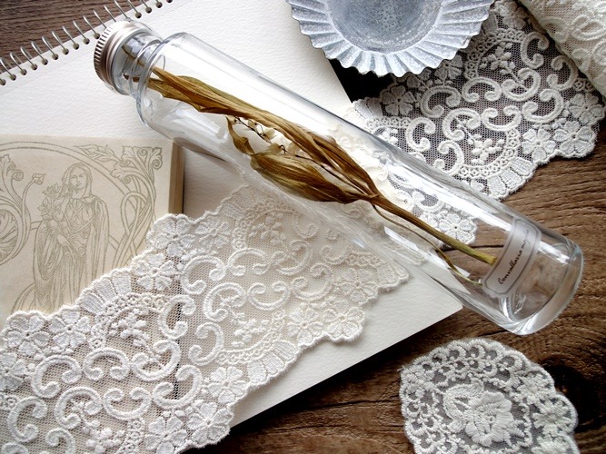 ドライフラワーのみをガラスボトルに閉じ込めたスタイルにこだわったのは、