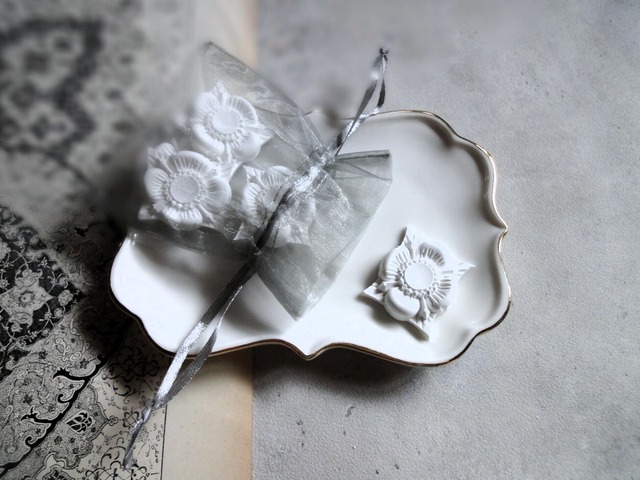 小さな小さな箱庭に咲く花々を集めて作ったような、小さな手のひらサイズのリース。 裏面にアロマストーンがあるので、お好みの精油や香油を染み込ませて香りを楽しみながら、飾ることができる可愛らしいリース。 カーテンレールや窓辺に吊るして香りを風に乗せて楽しむ お気に入りのお皿やコースターの上に乗せて、ほのかな香りを楽しむ 飾って楽しむスタイルは人それぞれ、自由自在。 ------------- 水彩画で描いたような、美しい紫陽花をぎゅーっとリング状に仕上げたリース。 満月のようにぐるっと一周、紫陽花で埋め尽くしました。 紫陽花の色とオーガンジーリボンの色の組合せにもこだわっています。 モーブ色の紫陽花にはライトベージュ色のオーガンジーリボンを結び、アンティーク調の雰囲気を大切にしています。 ブルー色の紫陽花にはホワイトのオーガンジーリボンを結び、青空と白い雲のクリアな雰囲気を大切に。 ラベンダー色の紫陽花にはホワイトのオーガンジーリボンを結び、癒しと清浄をテーマに。 ------------- ちょっとしたプチギフトやお誕生日プレゼントにも喜ばれる、手のひらサイズのアロマストーン。 1点ずつの販売です。 箱に入れてお届けします。 ■品番■ Seasonal ornament-05-ABC ■素材■ 石膏、造花、オーガンジーリボン ■セット内容・サイズ■ アロマストーン:直径60×30mm 造花部分:20-30mmの厚み ボックス:93×94×32mm ■カラー■ オプション機能をご利用ください。 モーブ ブルー ラベンダー -------- 以下のオプションは備考欄にご記入ください。------- ■オプション1■アロマオイル ラベンダー シダーウッド ヒノキ ユーカリ&ペパーミント 無料でアロマオイルを数滴、裏面につけてお届けいたします。 アロマオイルを梱包の時点で垂らしますが、 配送中に香りが飛んでしまう可能性もございます。 香りが足りないと感じた場合は、お手持ちのアロマオイルを追加してください。 ■オプション2■ オーガンジーリボンの色を変更したいときはご指定ください。 1枚目の写真と同じ色のご希望の時はそのままで。 ホワイト グレー レッドブラウン ダークブラウン ダークグリーン ネイビー 【受注生産方式】 ご注文・ご入金確認後、お時間をいただいて製作・発送いたします。 お受け取りまでにお時間がかかりますので、ご注意ください。 土曜日・日曜日・祝日は発送業務はお休みとなります。 ------ ご注文の前に以下の注意事項をご確認ください。 ----- ■アロマストーンについて■ 裏面にアロマオイルを垂らし、しみ込ませることでゆっくりと香りが広がります。香りを楽しむことで心を癒すインテリア雑貨です。石膏を固めてつくるので、丁寧にお作りしていますが、小さな気泡や欠けが発生します。 ■画像について■ 画像について、できる限り現物に近い状況を再現するよう心がけておりますが、PC環境などの影響により画像と現物の印象が若干異なる場合があります。画像の著作権は放棄しておりません。画像の無断引用はお断りいたします。