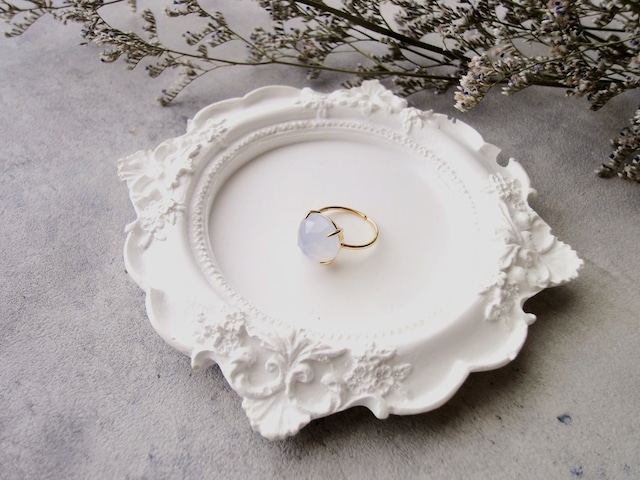 ふんわりと淡いブルー色を帯びた、乳白色のブルーカルセドニ。 凛とした清楚を湛えた天然石。 石の美しさを十分に味わえる、12mmサイズの円形のカボション。 シンプルなラインの指輪の枠のデザインで普段の装いに合わせやすいです。 小さな箱に入れてお届けします。 ■品番■ CSP-8-12-2 ■石■ カルセドニー ローズカット加工 ■素材■ 指輪の枠:SILVER925製・18KGP仕上げ ■サイズ■ 石:12mm 指輪サイズ:フリーサイズ:7~13号 お届けは8号前後になります。 到着後、指で広げてサイズを調整してください。 【受注生産方式】 ご注文・ご入金確認後、お時間をいただいて製作・発送いたします。 お受け取りまでにお時間がかかりますので、ご注意ください。 土曜日・日曜日・祝日は発送業務はお休みとなります。 ■画像について■ 画像について、できる限り現物に近い状況を再現するよう心がけておりますが、PC環境などの影響により画像と現物の印象が若干異なる場合があります。画像の著作権は放棄しておりません。画像の無断引用はお断りいたします。 ■天然石について■ 天然石は濁り・内包物、欠け・傷、発色のむらなどがあります。また、画像に映し切れない細かい傷や内包物もあります。一粒一粒、その色や透明感などには、個性があり、それが天然石である証でもあります。画像について、できる限り現物に近い状況を再現するよう心がけておりますが、PC環境などの影響により画像と現物の印象が若干異なる場合があります。 ■ゴールドフィルド 14KGFについて■ 一般的なゴールドメッキよりも厚く14金でメッキを施した金属です。欧米ではこの素材が一般的になっており、日本でもハンドメイドアクセサリーの一部で使用される機会が多くなりました。メッキが厚いことからアレルギー対応として取り扱う業者も多いですが、当店では金属アレルギーの方へお勧めいたしません。ワイヤーの切り口は中芯の真鍮も表に出てしまい、汗や雨など水分で金属アレルギーを引き起こす危険性は同じだからです。 ---------------- コーディネートでも楽しめる、同じ天然石のアクセサリー ペンダントネックレス https://hummingbird.shopselect.net/items/16002340 指輪 https://hummingbird.shopselect.net/items/62714396