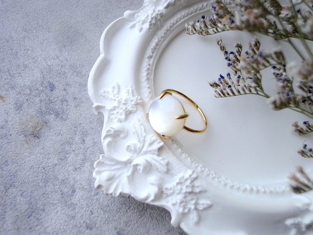 天然石のシンプルリング ■ Round 12mm ■ ホワイトシェル(白蝶貝)