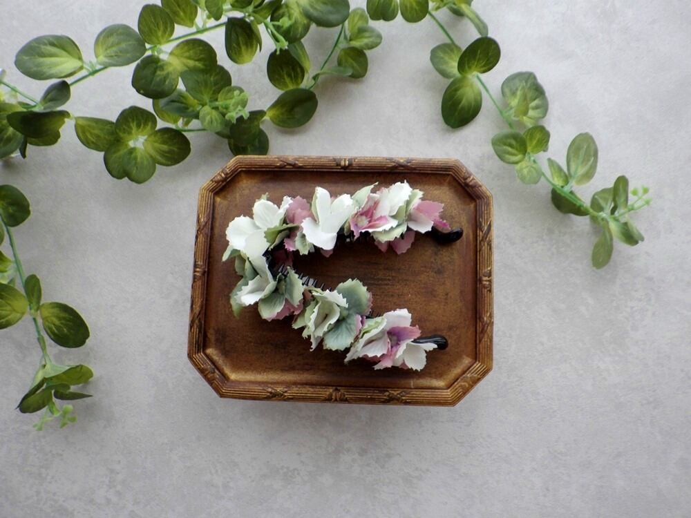 特徴的なギザギザカットの花びらは、今までにない紫陽花のバナナクリップ。