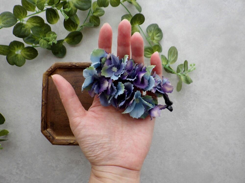 特徴的なギザギザカットの花びらは、今までにない紫陽花のバナナクリップ。