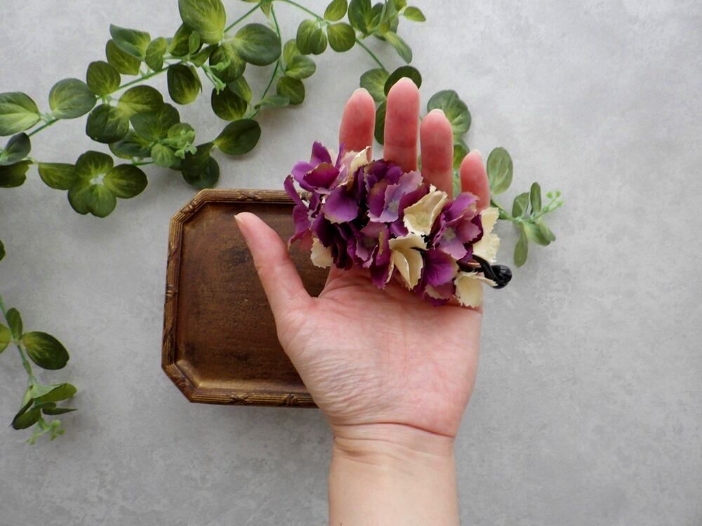 特徴的なギザギザカットの花びらは、今までにない紫陽花のバナナクリップ。