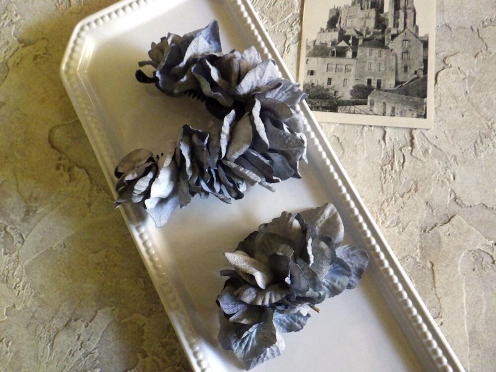 しっかり固めの布素材でできています。これまで通り軽い付け心地ですが、しっかりとしたボリュームがあるバナナクリップができました。通常の紫陽花のバナナクリップとの比較画像もご用意しています。ご覧いただければ、そのボリュームの違いが一目瞭然です。