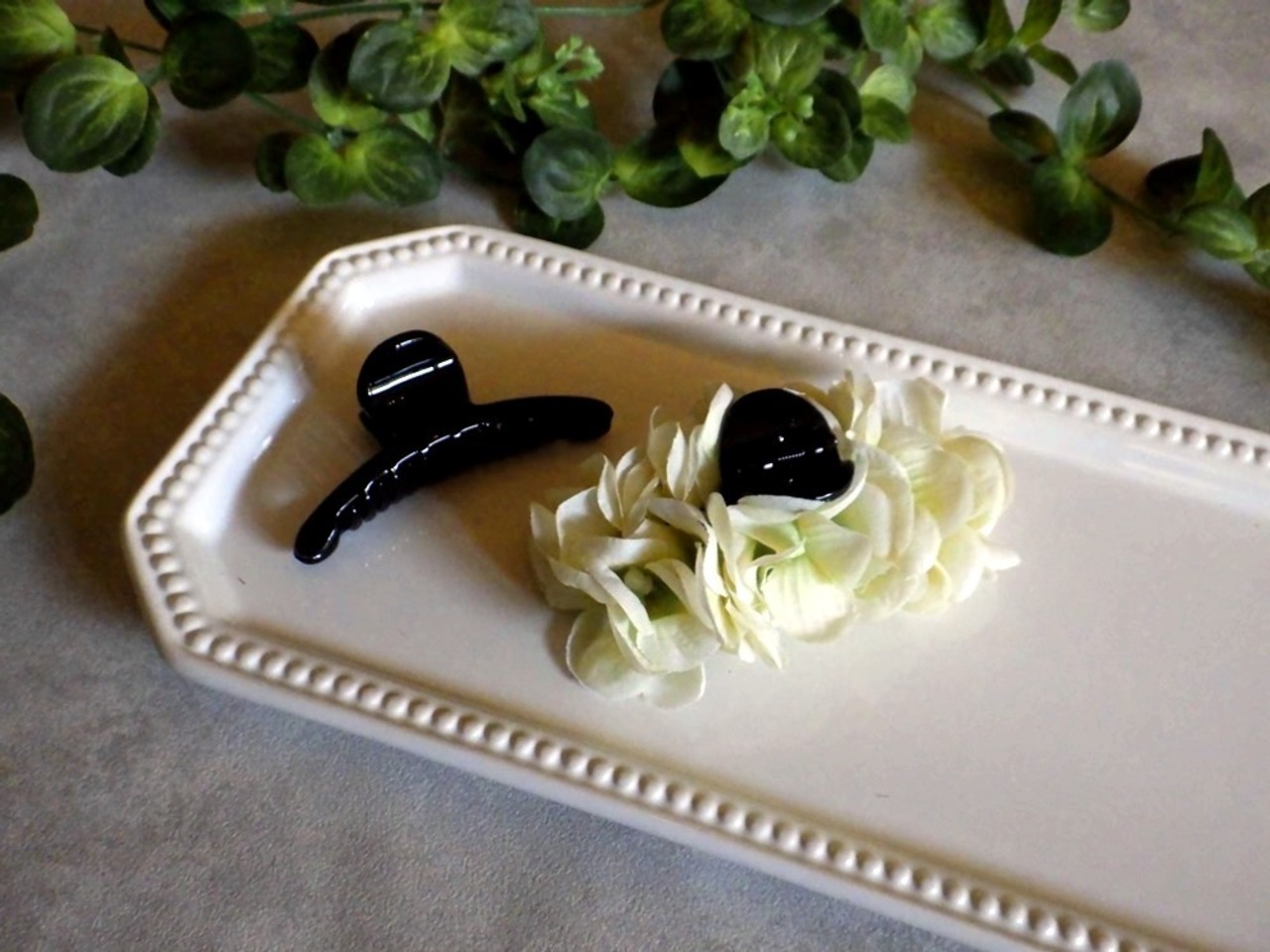 丸い花びらのくるんとしたフォルムが愛らしい紫陽花のポニーフックになりました。3色展開。