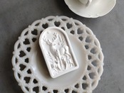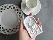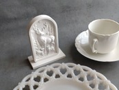 白い石膏でできた、切り取ったようなレリーフ。まるで古い石碑の一部のように美しいのです。その美しさを気軽にデスクやテーブルに飾って楽しんでほしいという思いからできた、インテリア雑貨です。