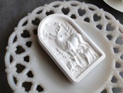 小雪の舞う冬の景色の中に鹿の親子がたたずむ、デザインです。牡鹿のたくましい角に生きる逞しさと、家族が寄り添う光景に安心感を読み取ることができます。クリスマスの前後の冬のインテリアとしてぜひ飾ってほしい、美しいアロマストーンです。