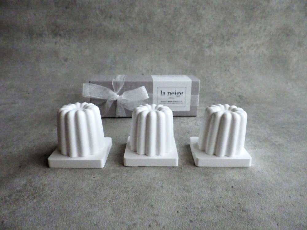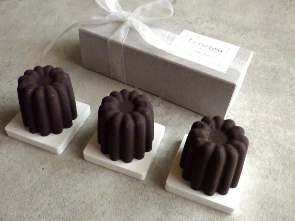 ミュージアムカフェ「la neige(ラ ネージュ)」で焼き菓子が新メニューに加わりました!手のひらに乗せると可愛い、小さなカヌレができました。カヌレ1点と台座が3組セットになっての販売です。