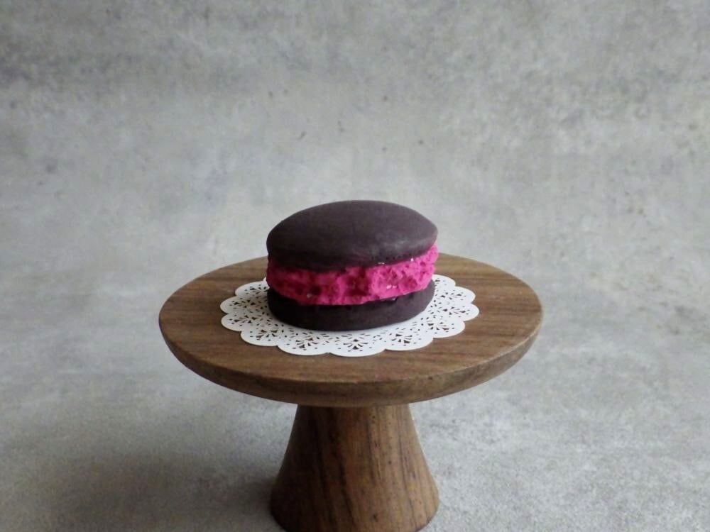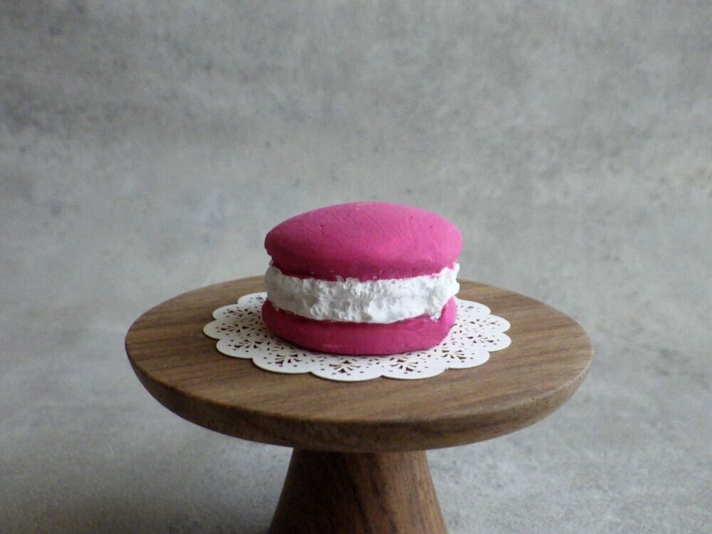 実は石膏でできた、フェイクスイーツです。アロマオイルやお好みの香水を染み込ませて、香りを楽しみつつ飾って楽しむインテリア雑貨です。贈り物にもぴったりです。裏面に「食べ物ではありません」と表示しています。