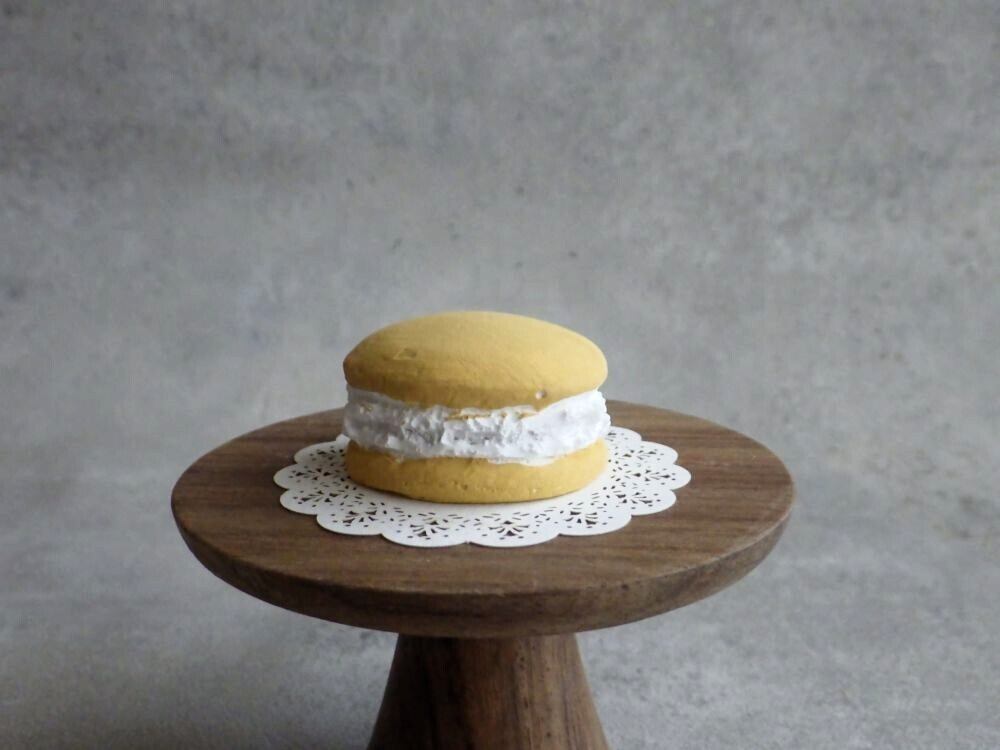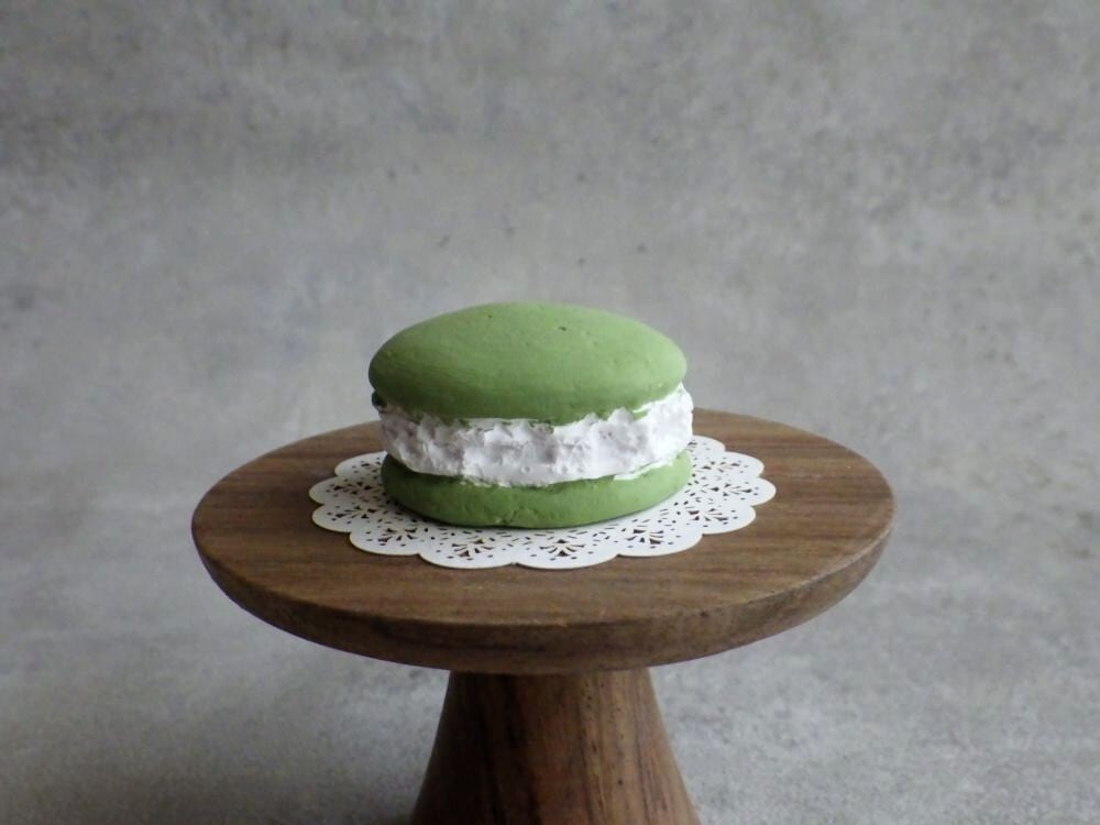 ミュージアムカフェ「la neige(ラ ネージュ)」で焼き菓子が新メニューに加わりました!手のひらに乗せると可愛い、小さなマカロンができました。マカロン1点と台座が1組セットになっての販売です。