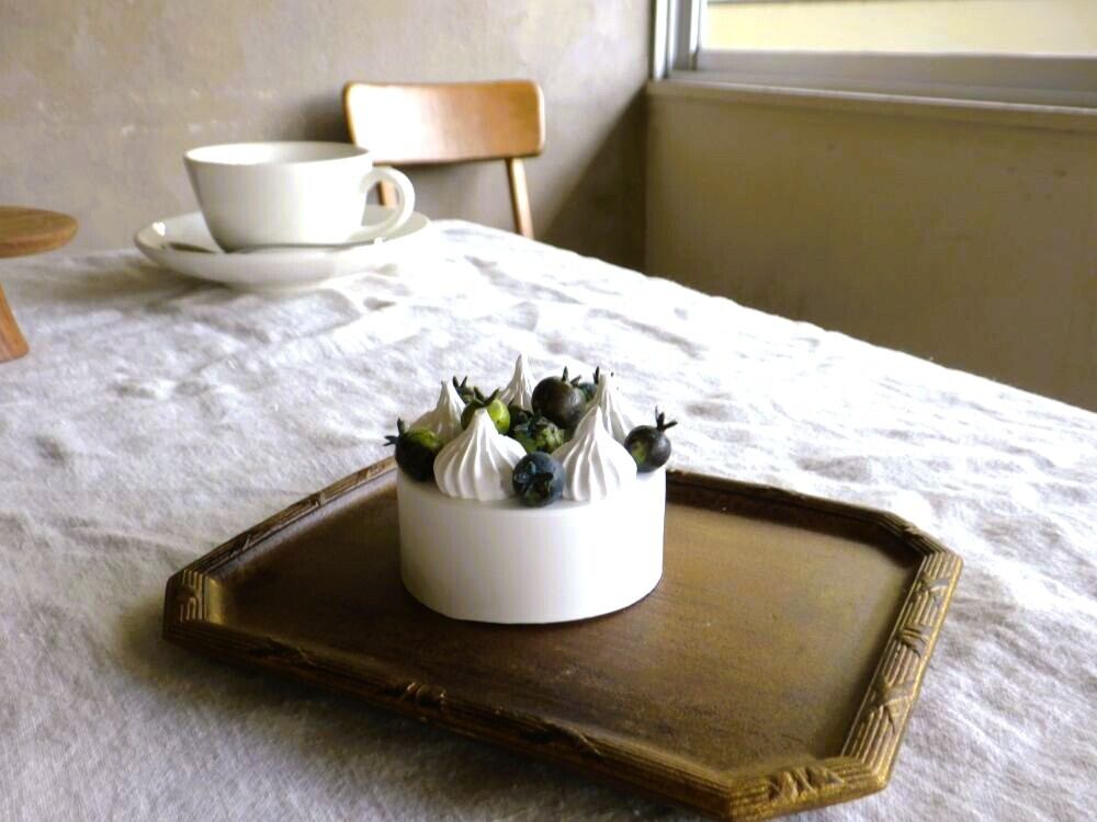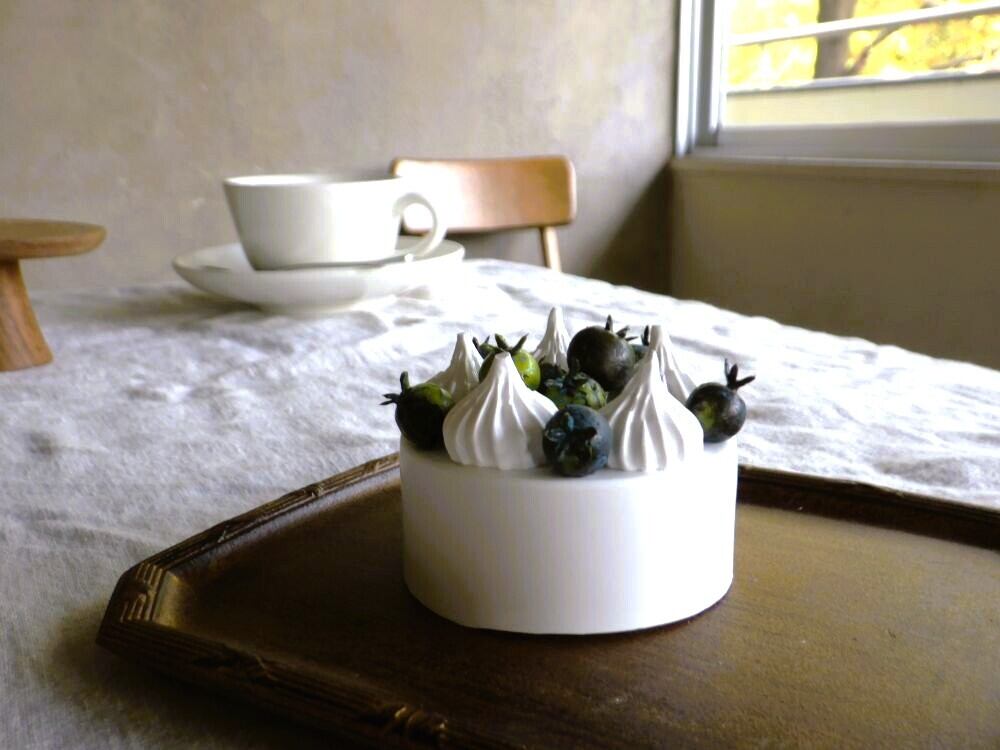 このケーキも「白い博物館の展示物」と同様に、真っ白いアロマストーン製です。