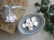 裏面にアロマオイルを垂らし、しみ込ませることでゆっくりと香りが広がります。香りを楽しむことで心を癒すインテリア雑貨です。石膏を固めてつくるので、丁寧にお作りしていますが、小さな気泡や欠けが発生します。