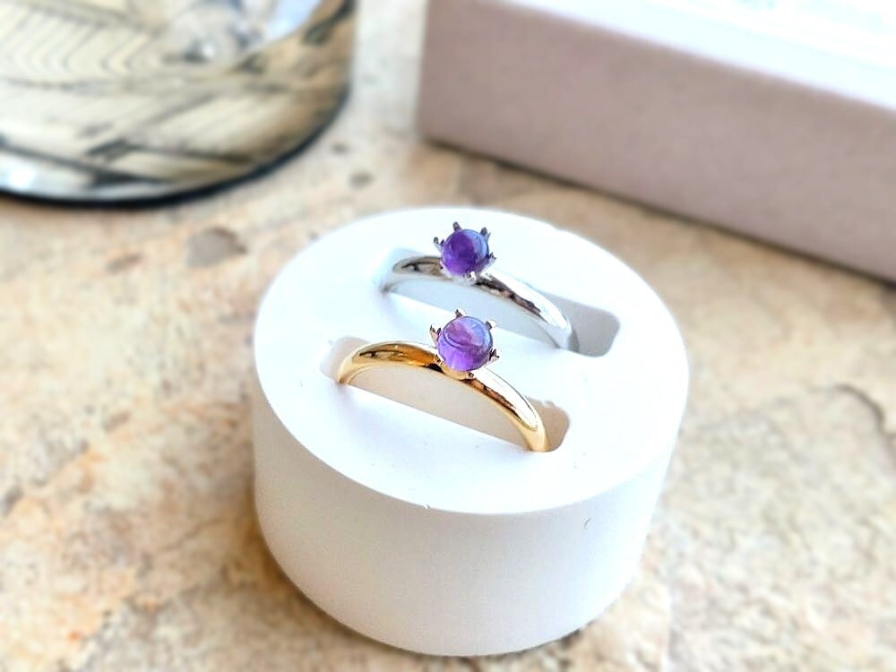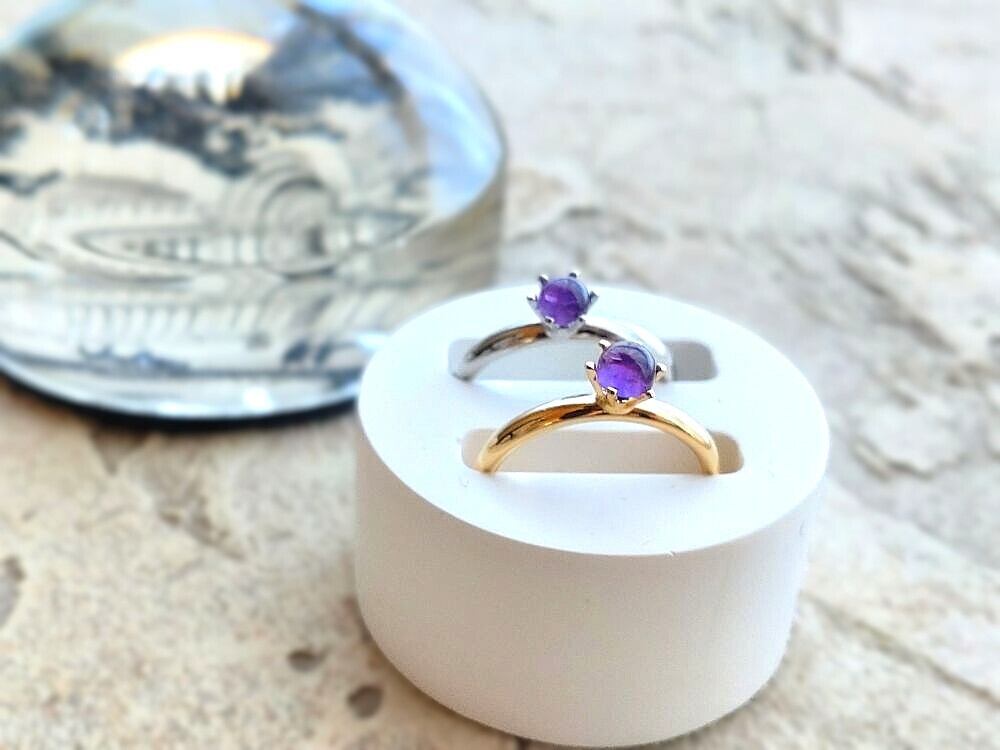 天然石の指輪 ■ ラウンドカボション 4mm ■ アメジスト