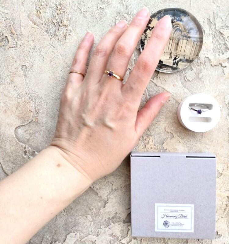 指輪の金属色はゴールド色、シルバー色のどちらかをお選びください。ご注文いただいてから制作してお届けいたします。また、小さな箱に入れてお届けします。ギフトのラッピングの際は【別売り】指輪用の箱に入れてご用意します。