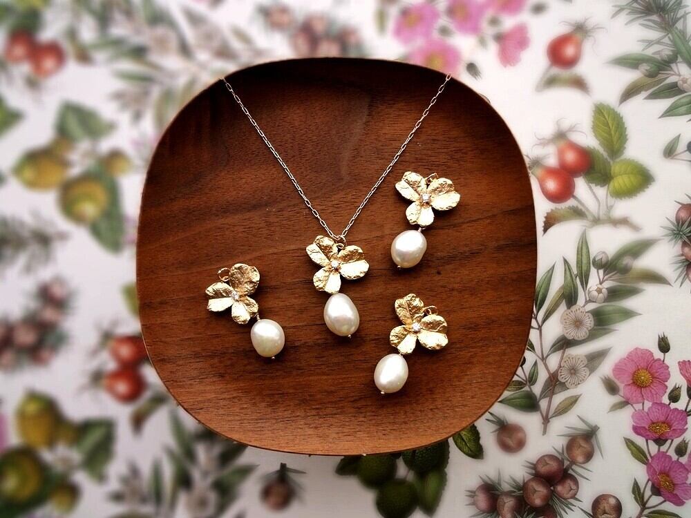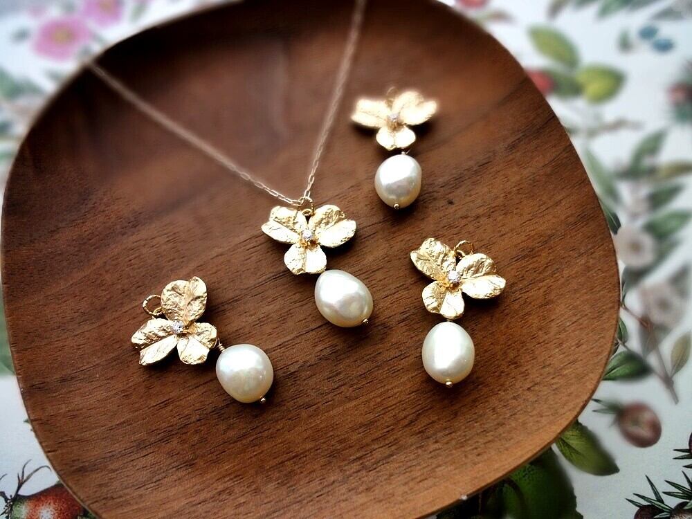 モチーフ:14mm x 18mm 淡水パール:10~12mm