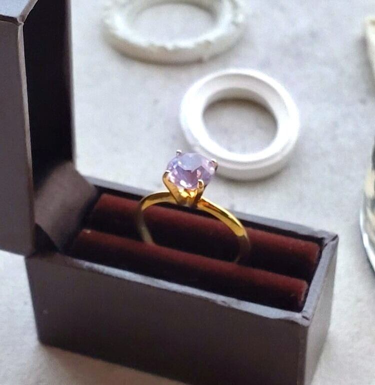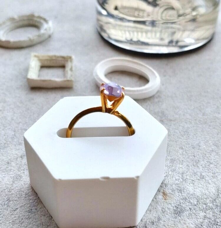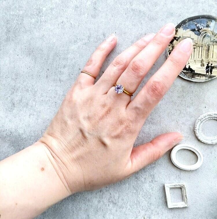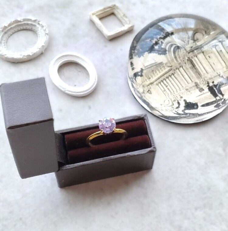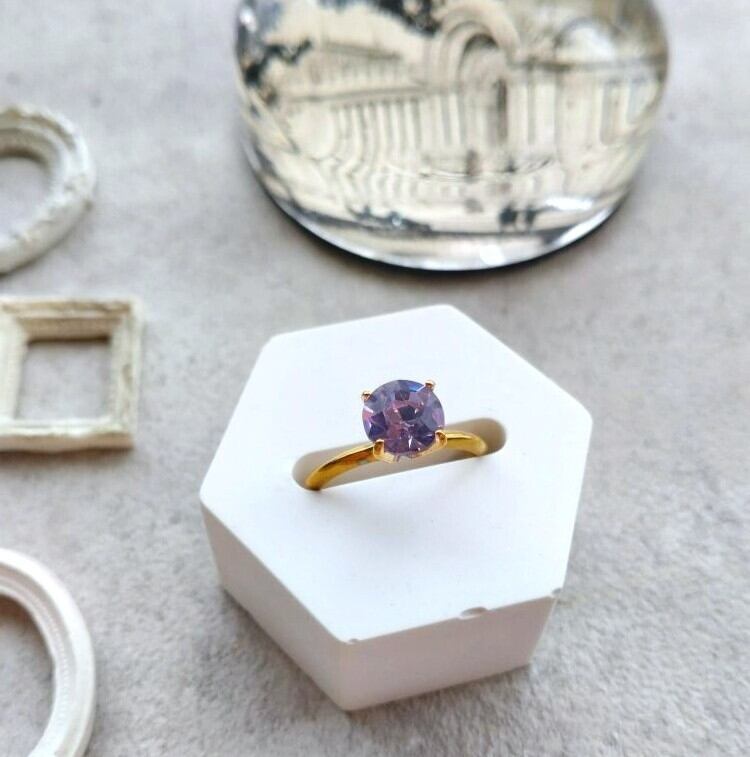 アレキサンドライトのすみれ色したヴィンテージグラスを指輪に仕上げました。