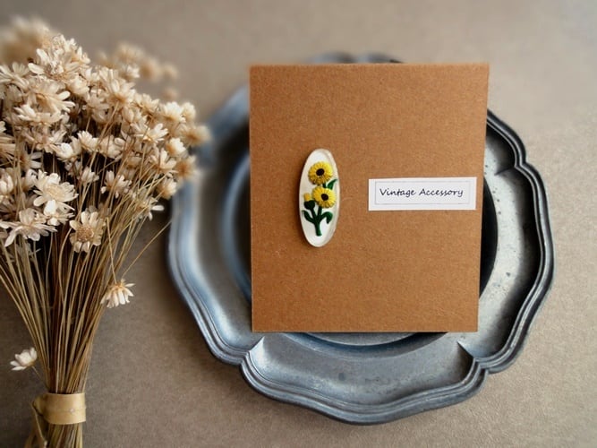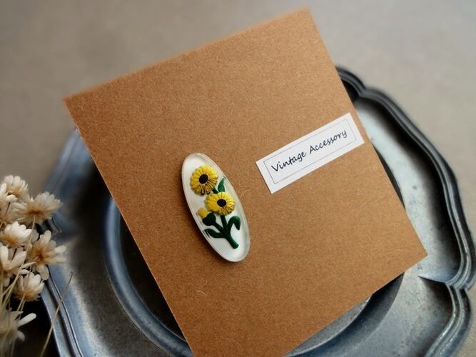 【片耳販売】耳飾り■ ヴィンテージ ■ お花のインタリオ イエローデイジー
