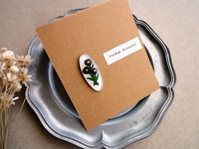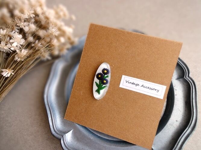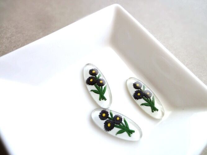 【片耳販売】耳飾り■ ヴィンテージ ■ お花のインタリオ 紫色のアスター