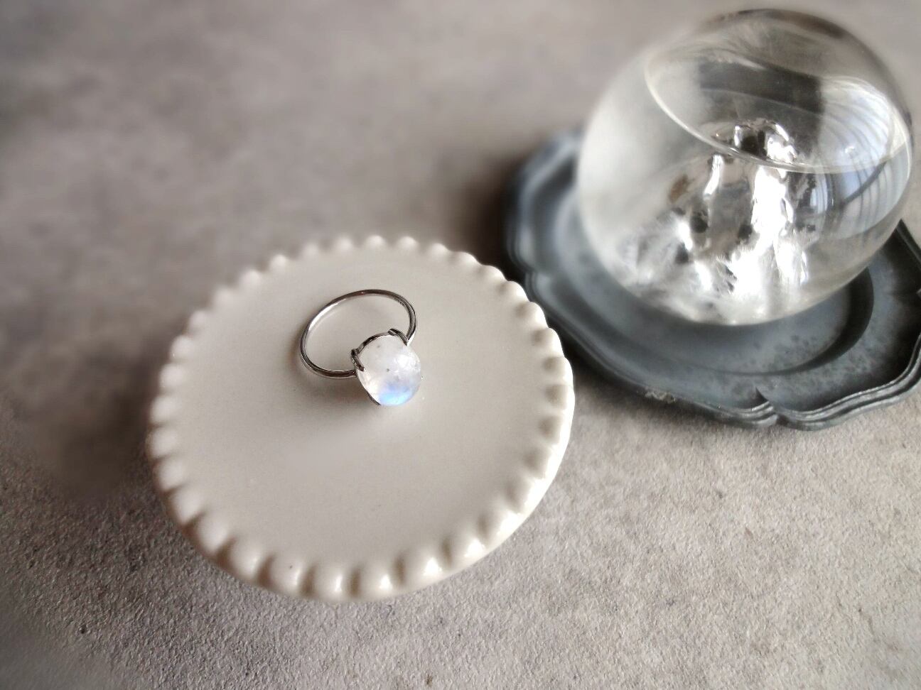 中でもレインボームーンストーンの美しさを引き立てる仕上がりです。