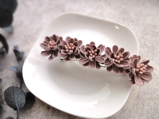 花びらのバレッタ ■ フェイクスエード ミニデイジー ■ モカピンク