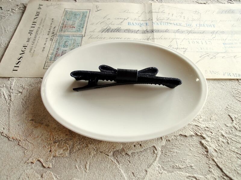 キリッと結んだフェイクレザーのリボン