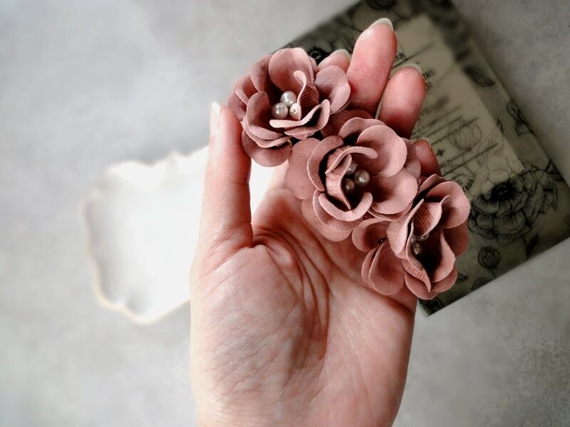 しっとりした質感のフェイクスエードの花びら、