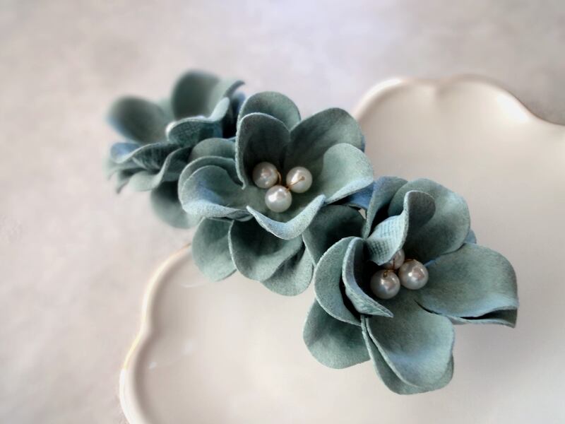 秋冬の洋服に合わせやすい、スモーキーカラーの花モチーフのバレッタ。