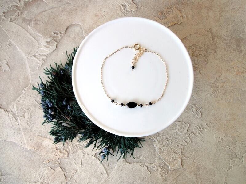 お米、ライスの形をした天然石のブレスレットシリーズ。神聖な穀物の豊授のブレスレット。長小豆チェーンにライスの形の天然石をつなげた、繊細で軽やかなデザイン。ライスの形の天然石を中央に配したデザインには、いくつかのこだわりが隠されています。