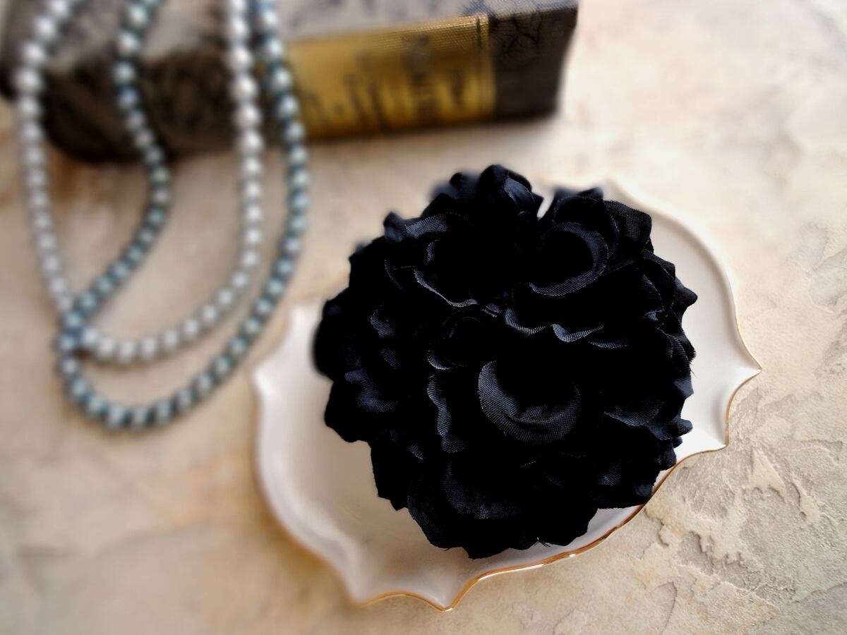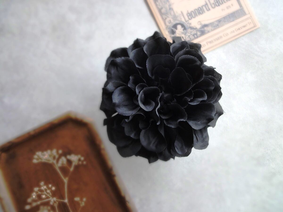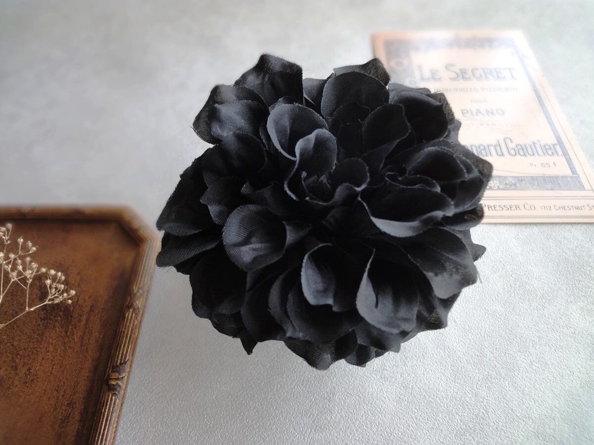 お使いいただける、シンプルシックの極みのブラック色のコサージュ。