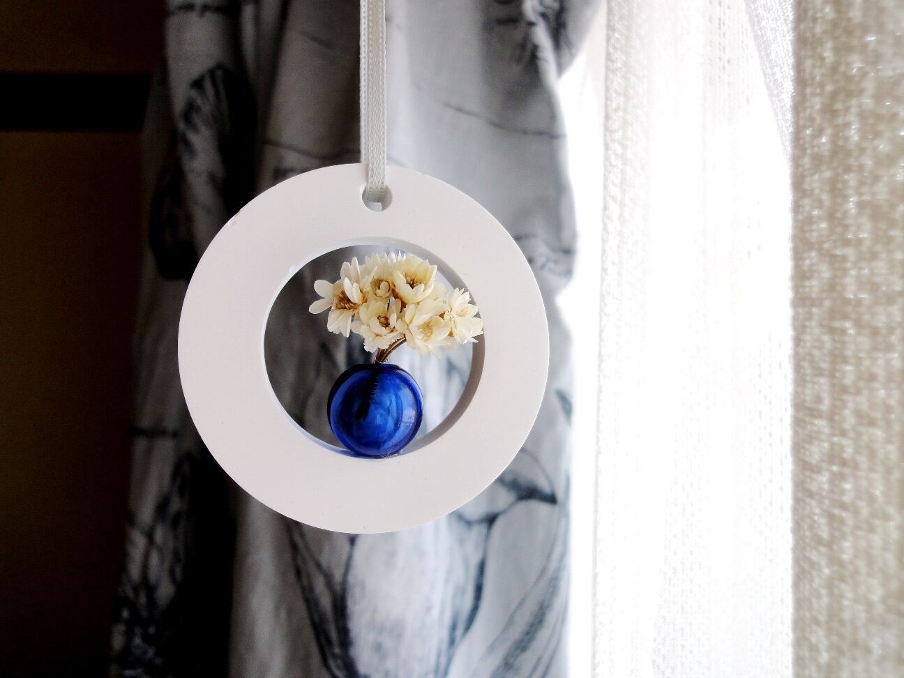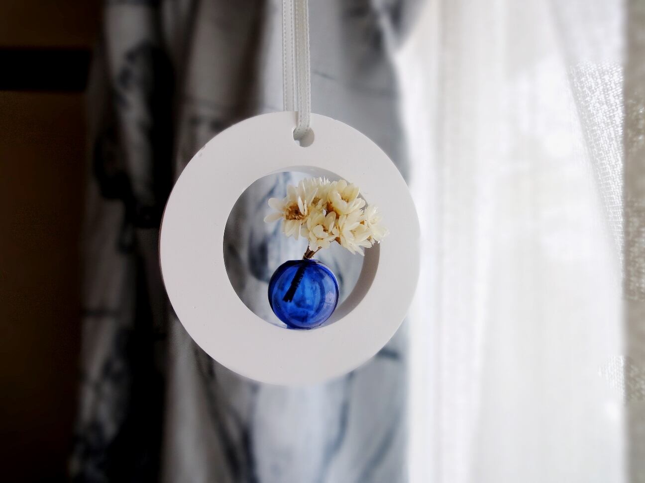 瑠璃色の花瓶の佇まいで涼やかな風が吹き抜ける、爽やかな空間ができあがります。