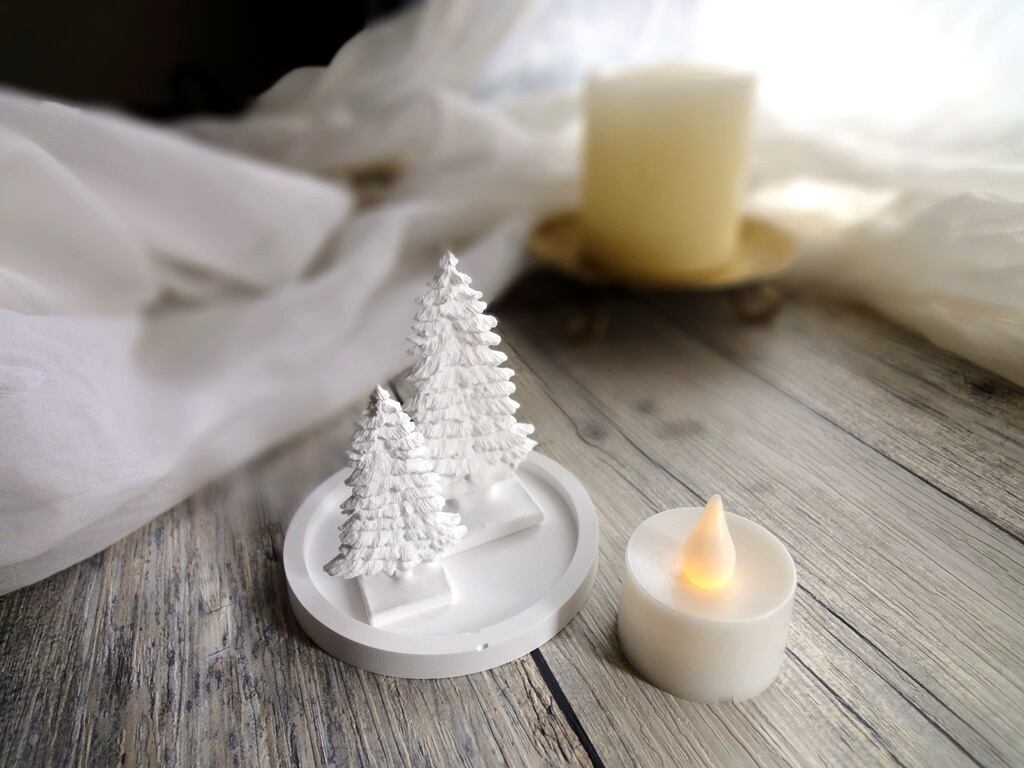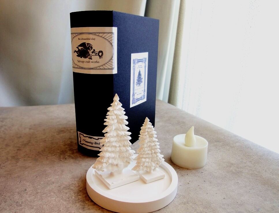 まずは場所を取らない、軽くて薄いフィンランドの森の樹2本をセットでお届けします。小さなクリスマスツリーとして、大人のクリスマスのデコレーションにしてください。セットで購入するとアロマストーンのトレー、LEDティーライトキャンドルがついてきます。揺らめく炎がLEDで再現されるティーライトは電池式キャンドルです。ペットやお子さんがいても安全に使えます。