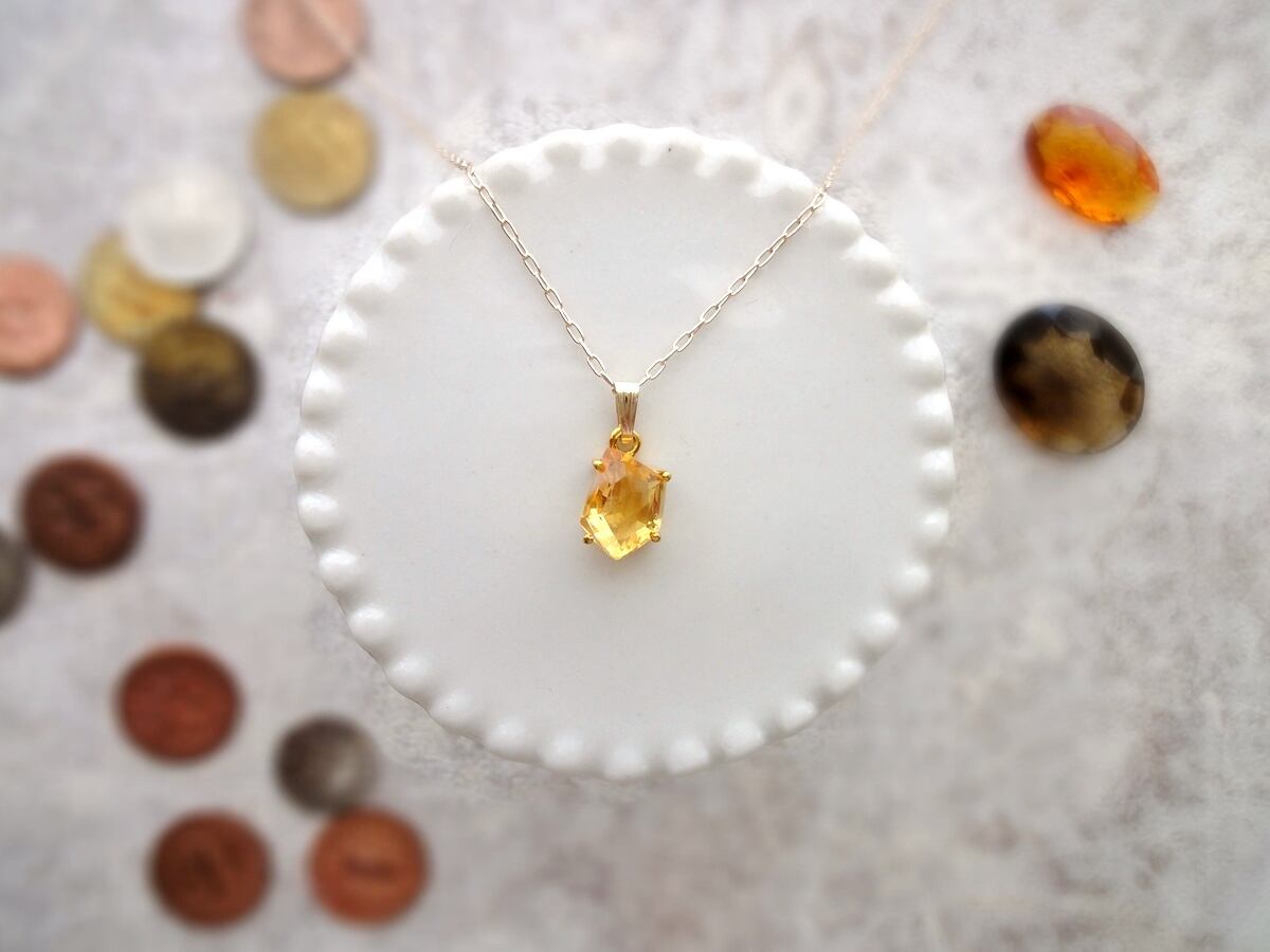 そのジューシーな黄色の天然石にひとつひとつの個性が生かされる形でカットが施され、ペンダントトップになりました。