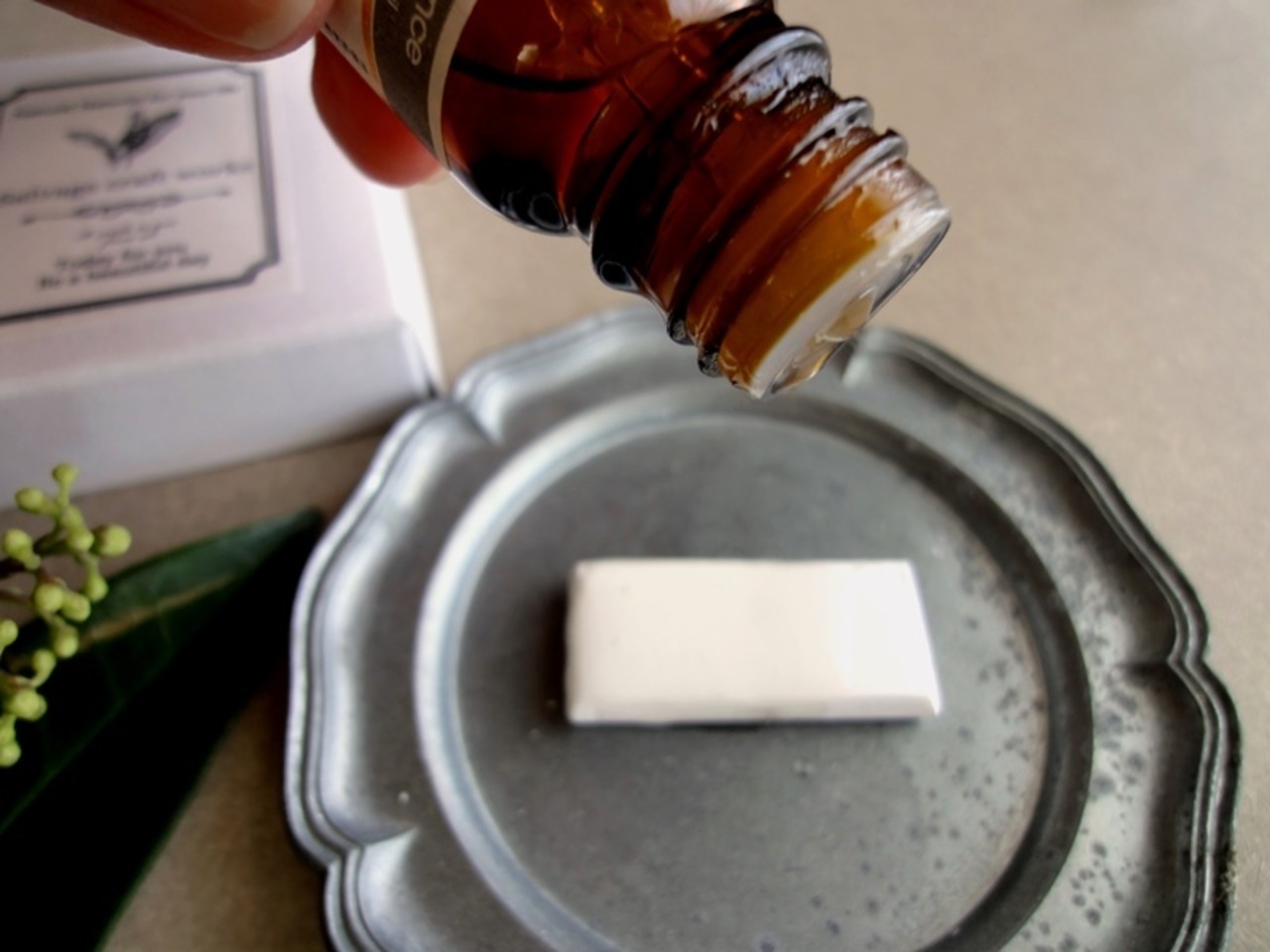 無料でアロマオイルを数滴、裏面につけてお届けいたします。アロマオイルを梱包の時点で垂らしますが、配送中に香りが飛んでしまう可能性もございます。香りが足りないと感じた場合は、お手持ちのアロマオイルを追加してください。