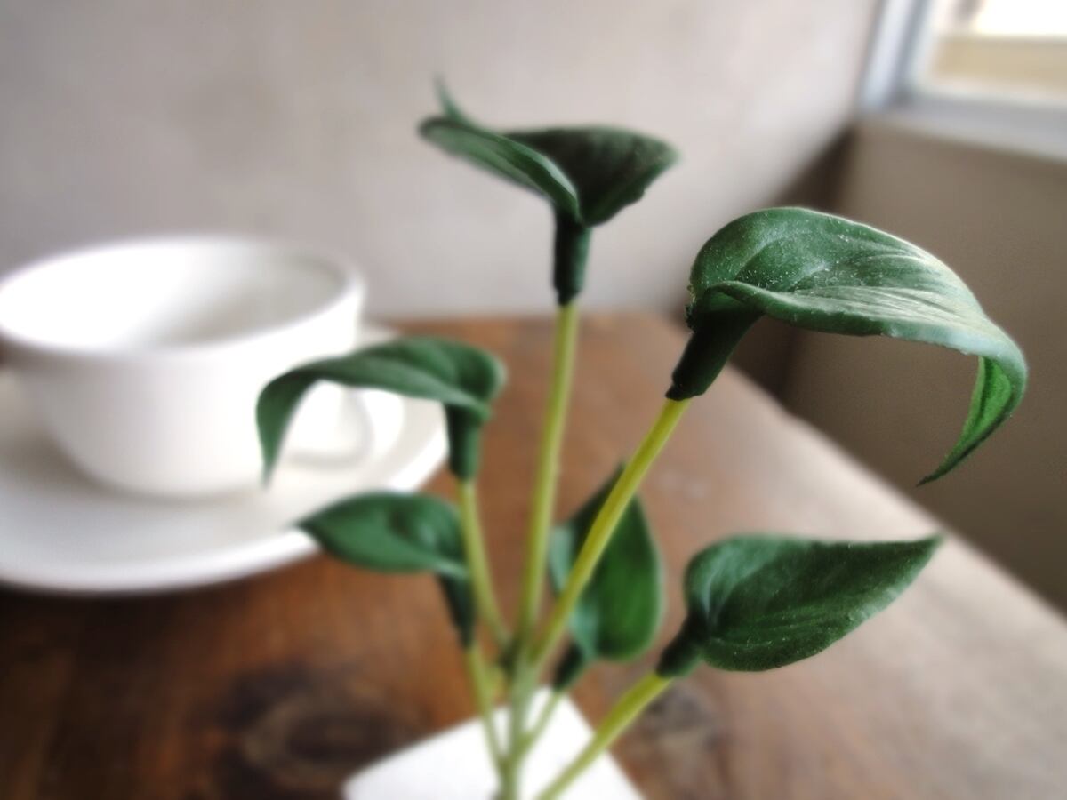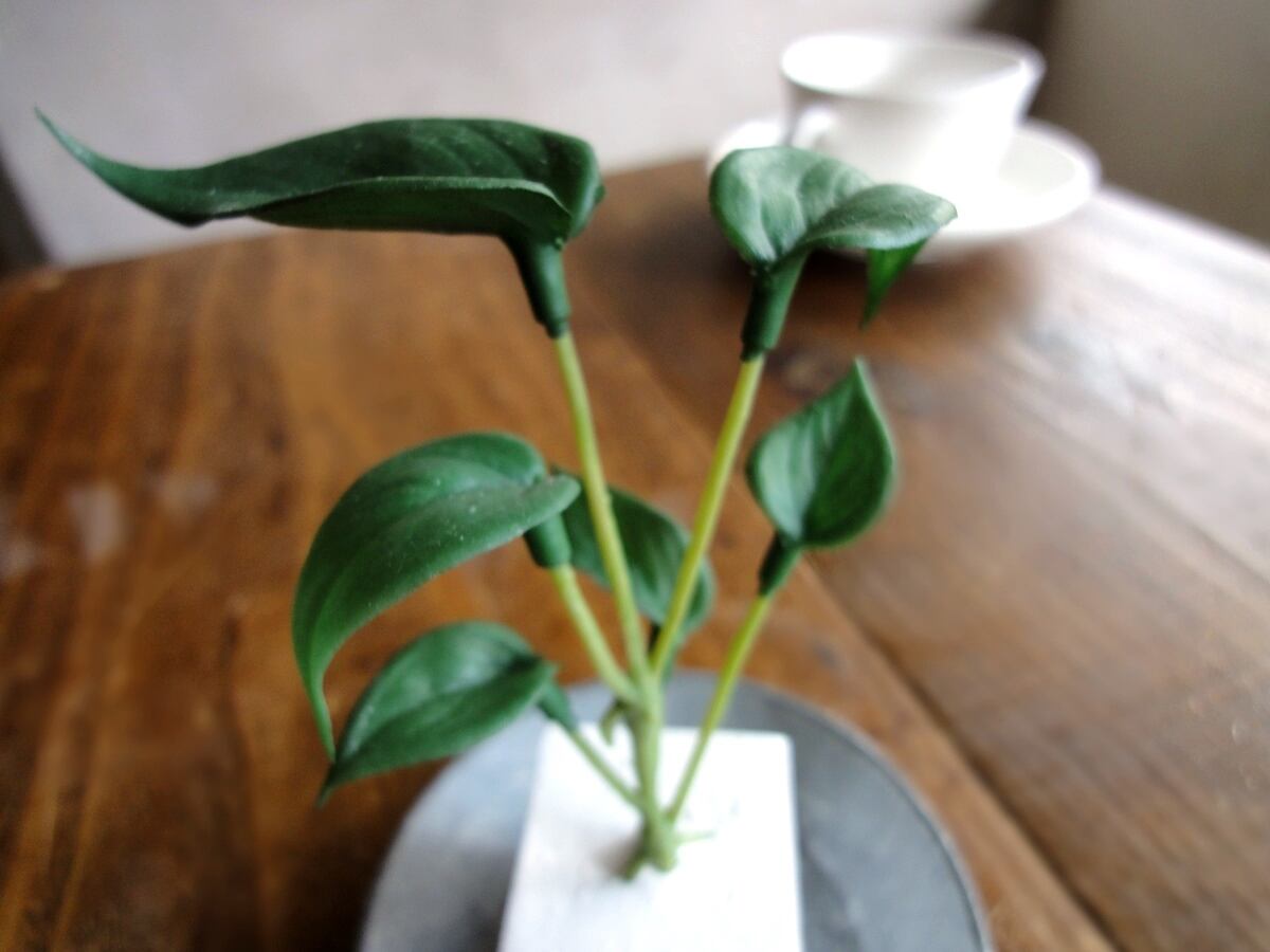 葉と茎の連結部は造花とわかる構造です。