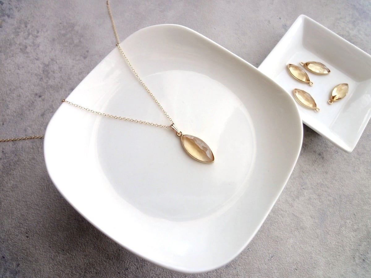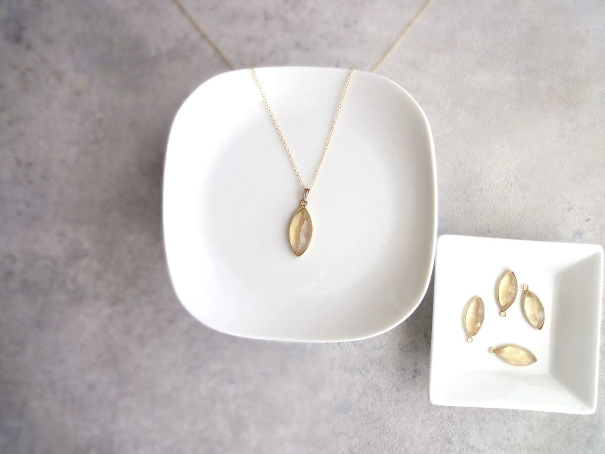 マーキスシェイプ、表面はローズカットを施したシトリンを18KGP製のフレームに収めて、