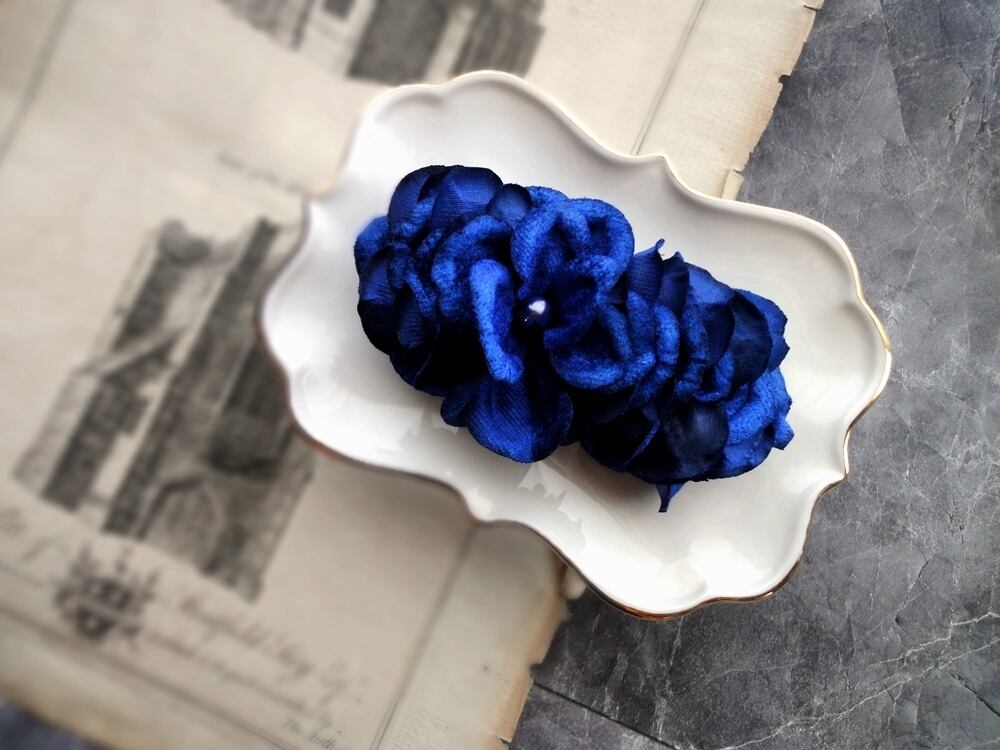 花びらのバレッタ ■ 人魚姫の鱗仕立て ■ ロイヤルブルー ベルベット