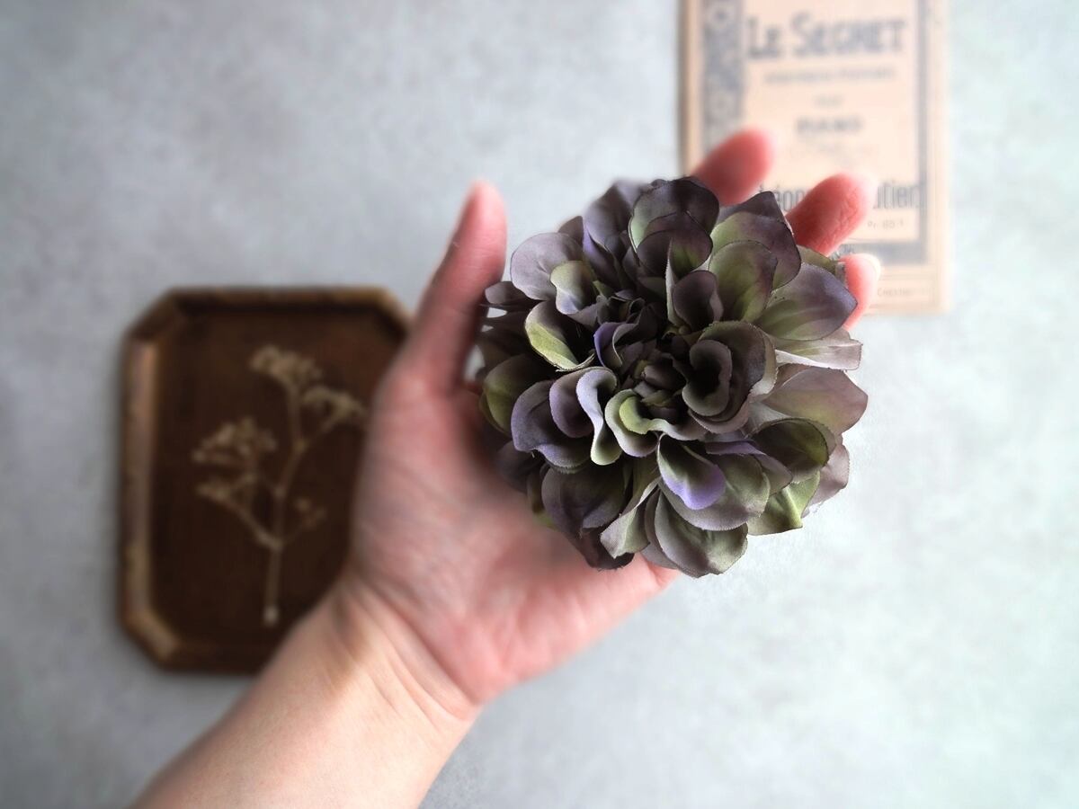 ふんわりシルエットのダリアをシンプルなコサージュに。