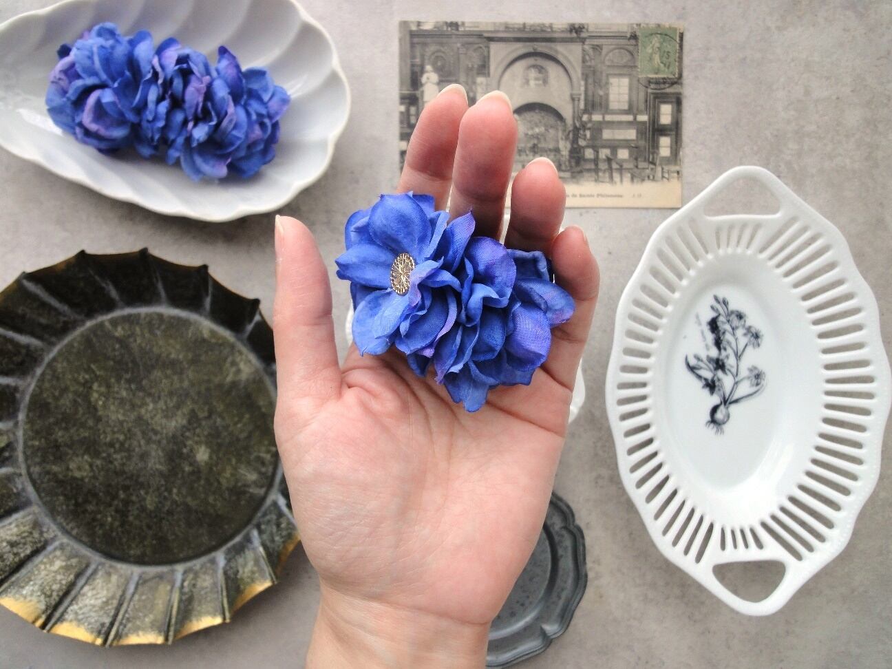 繊細な色の溶け合う、不思議な雰囲気の漂うボタニカルなヘアアクセサリーです。