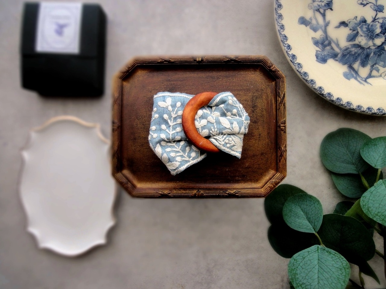 刺繡リボンのポニーフック ■ リングデザイン B ライトブルー ■ フィンランドのハーブ園