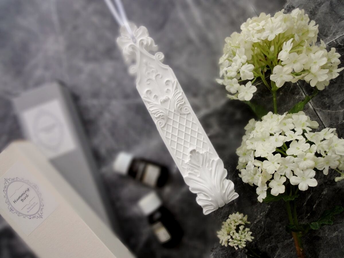 細長い形と細やかな西洋紋様が荘厳な雰囲気溢れるアロマストーン。
