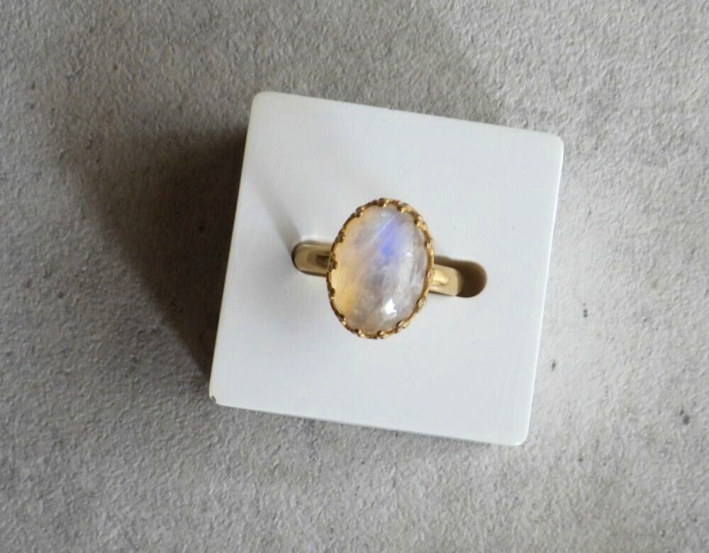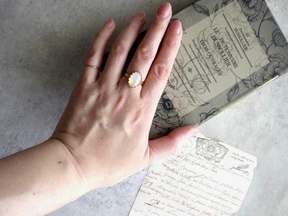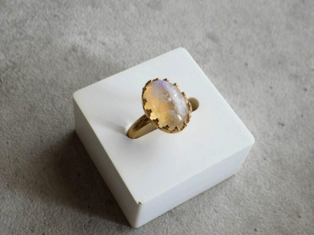 クラウンシリーズ ■ オーバル 天然石の指輪 ■ ホワイトラブラドライト(レインボームーンストーン)
