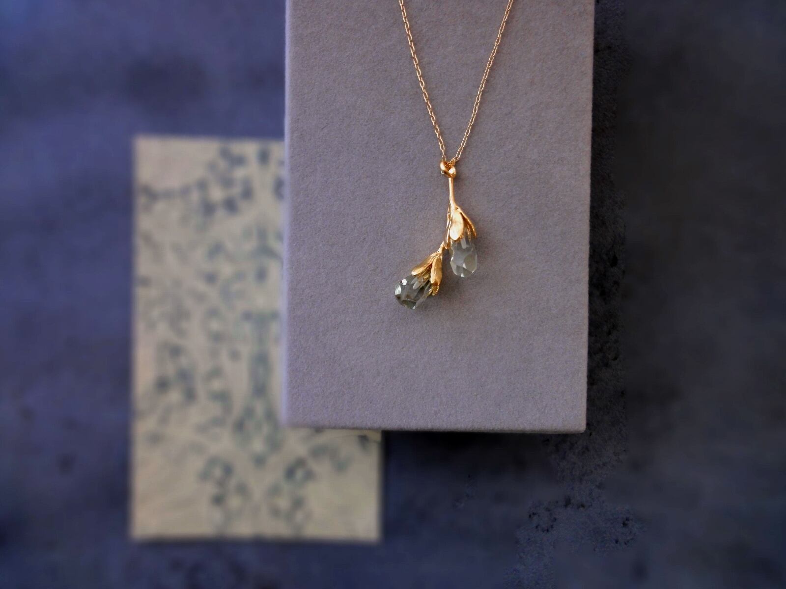 ■デザイン■ つぼみ2輪×天然石 グリーンアメジスト