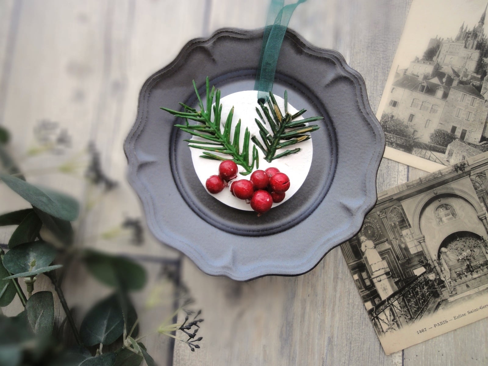 季節のアロマストーンは、白い円形のアロマストーンの上に季節の花々や植物などを乗せたデザイン。季節ごとの植物や風景をあなたにお届けします。窓辺や壁、ドアに吊るして香りをつけてお楽しみください。
