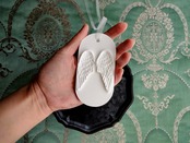 裏面にアロマオイルを垂らし、しみ込ませることでゆっくりと香りが広がります。香りを楽しむことで心を癒すインテリア雑貨です。石膏を固めてつくるので、丁寧にお作りしていますが、小さな気泡や欠けが発生します。