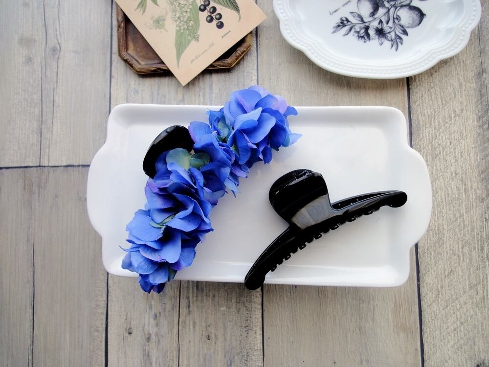 これまで、バナナクリップやバレッタ、ヘアゴムなどでたくさんのお客様にご好評いただいている、紫陽花シリーズに、バンスクリップが登場です。