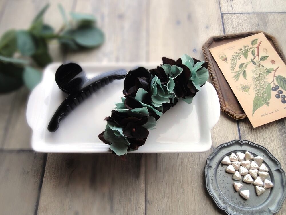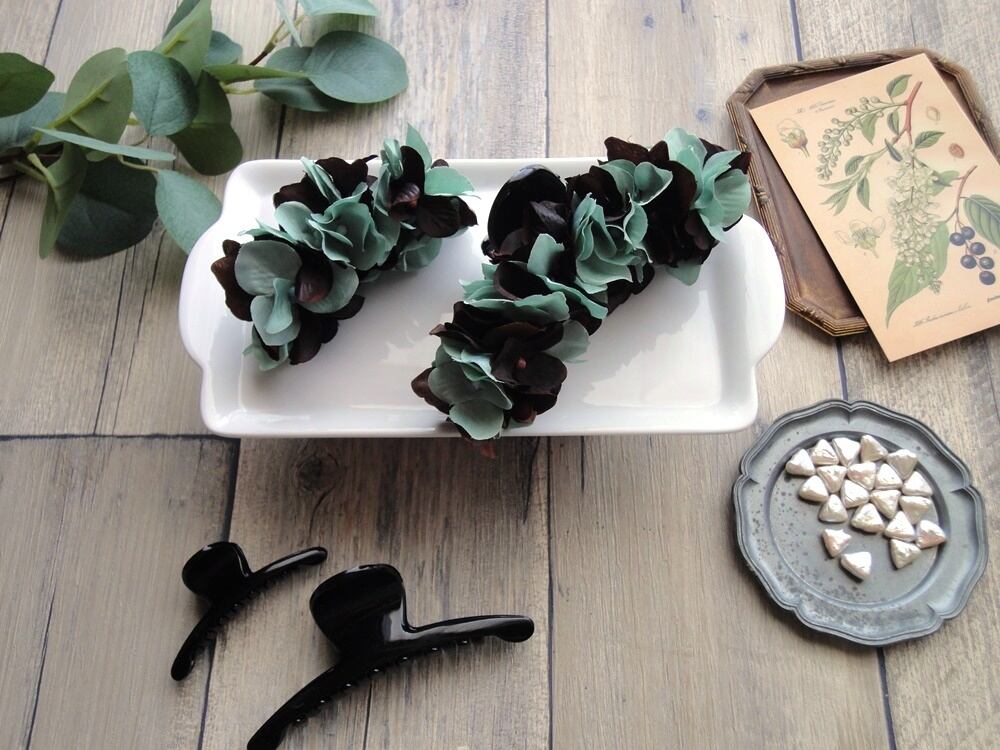 様々な色数のある、紫陽花のアーティフィシャルフラワーでバンスクリップをデコレーションしました。
