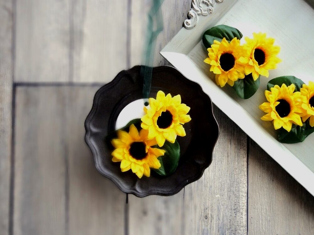 黄色の花というイメージが非常に強いですが、近年では品種改良により花色に様々なバリエーションが生まれました。オレンジ、赤、白、複色もあり、花心も黒のほかにグリーン、黄色などがあります。大きさも小さな姫ひまわりと呼ばれる愛らしいものが出てきました。