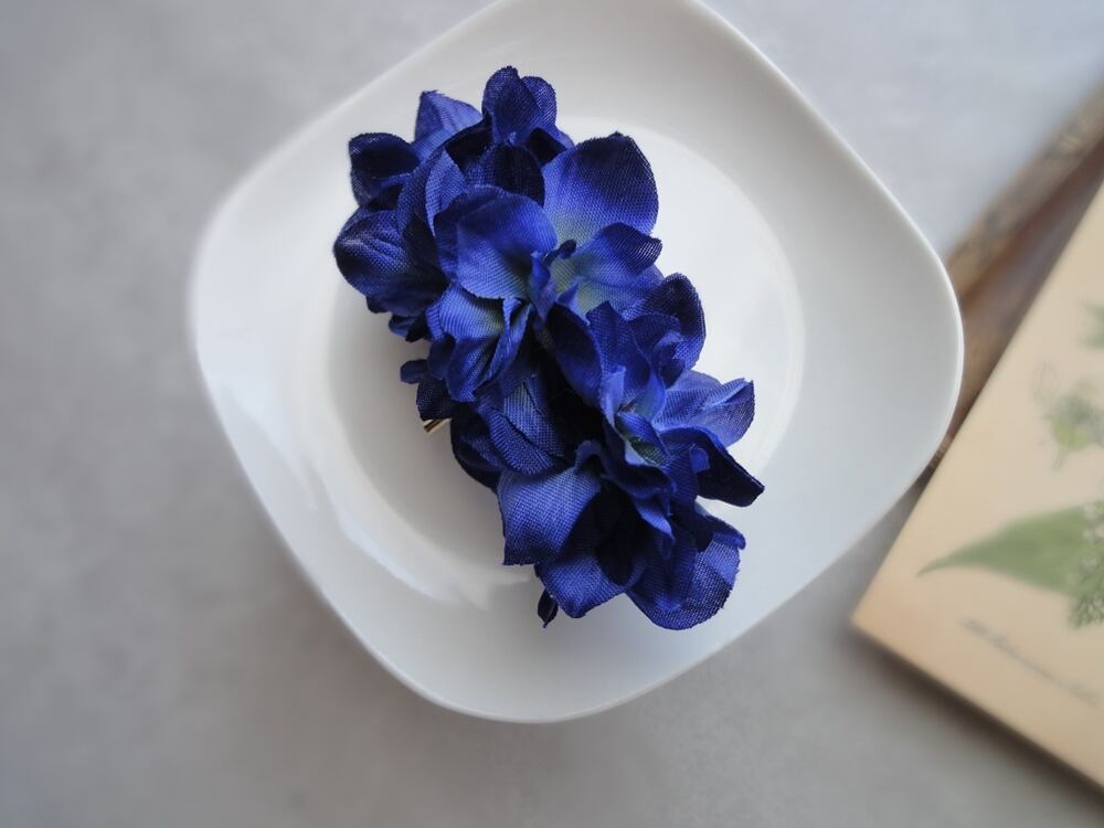 ひらひらと花びらが集まったような、紫陽花のポニーフック。