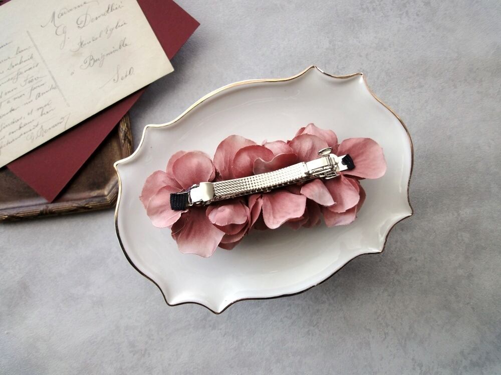 くすみ色がシックで上品な花のバレッタ。